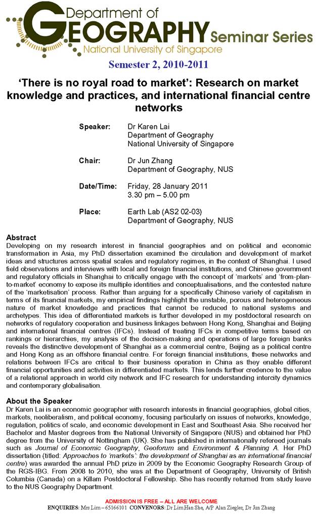 NUS Department of Geography Seminar presentation 28 Jan 2011 ** Click on poster below for larger image ** Share this:TweetLike Loading... Related Comments are closed.